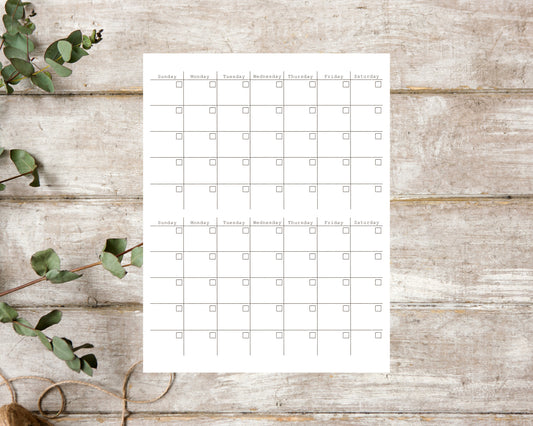 Undated Monthly Calendar Planner (Horizontally)